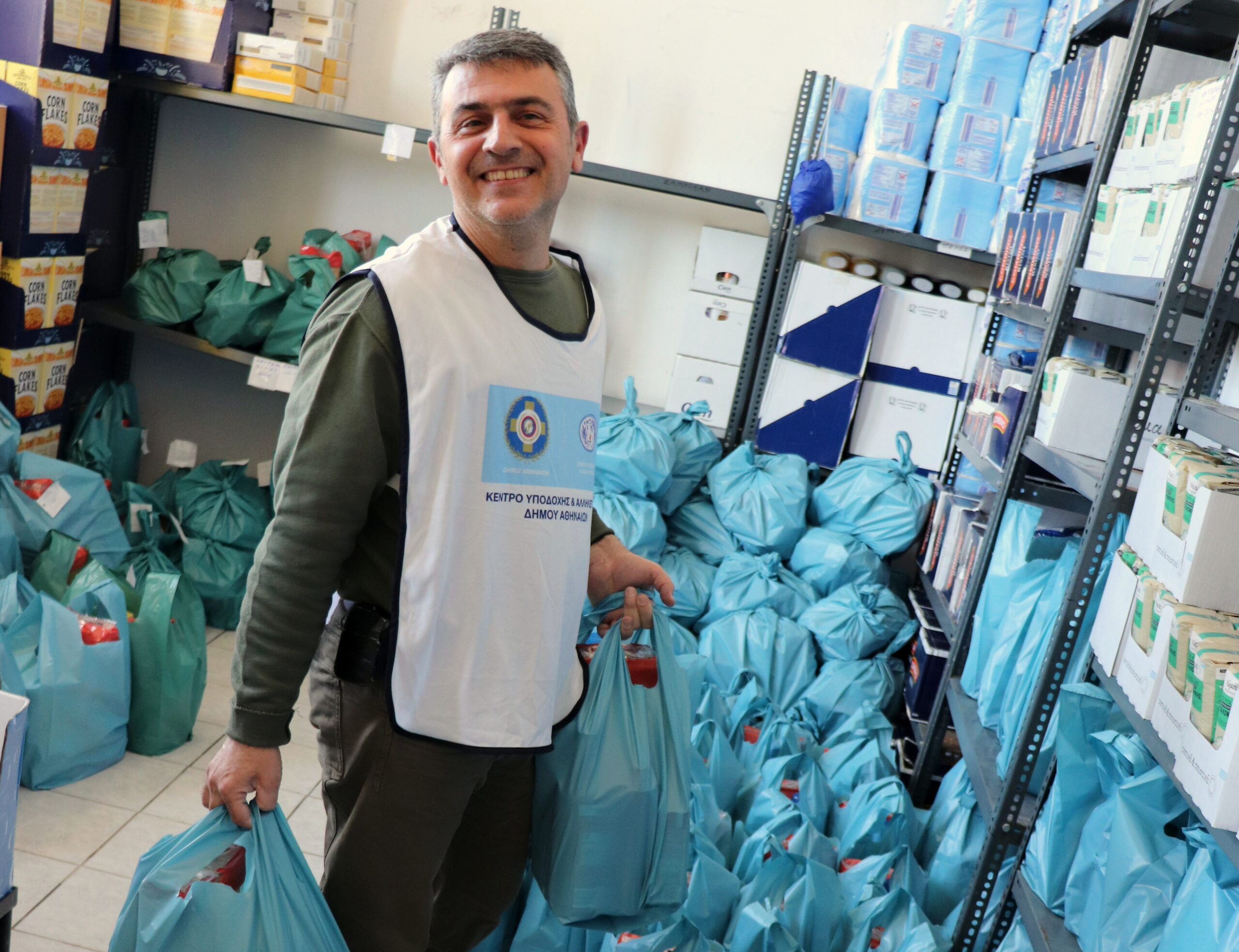 Δύο φορές τον μήνα οικογένειες που ζουν κάτω από το όριο της φτώχειας λαμβάνουν τρόφιμα και είδη πρώτης ανάγκης.