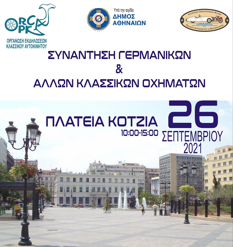 Πρόσημο αλληλεγγύης θα έχει η συνάντηση γερμανικών και κλασικών οχημάτων που συνδιοργανώνουν αυτή την Κυριακή στην πλατεία Κοτζιά η Οργάνωση Εκδηλώσεων Κλασικού Αυτοκινήτου και η Ελληνική Ομοσπονδία Φίλων Παλαιού Αυτοκινήτου και Μοτοσικλέτας, υπό την αιγίδα του Δήμου Αθηναίων. Τα έσοδα της έκθεσης θα διατεθούν στο Κέντρο Υποδοχής και Αλληλεγγύης του Δήμου Αθηναίων.