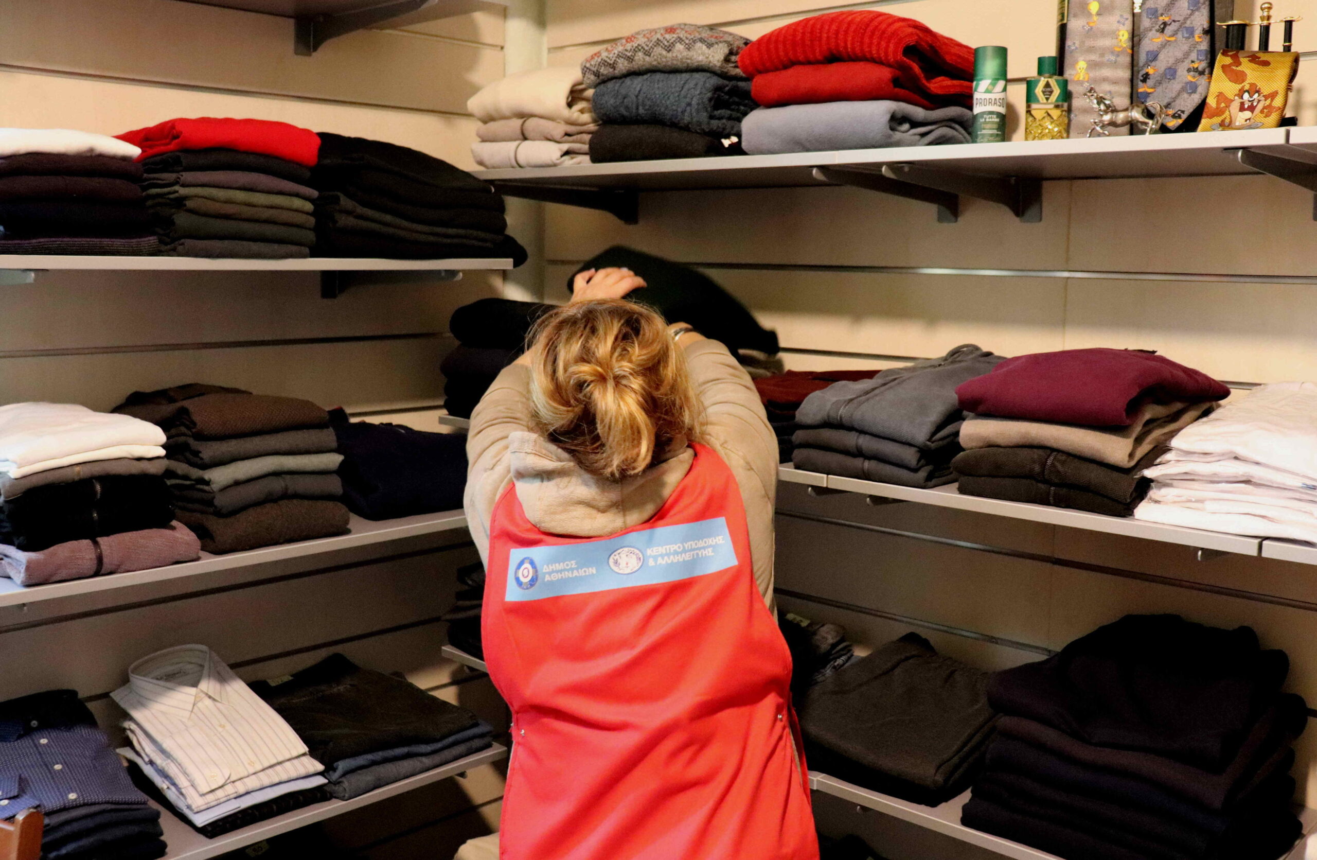 Ζακέτες, πουλόβερ, παντελόνια, πουκάμισα και παπούτσια, καινούργια ή ελαφρώς μεταχειρισμένα, διατίθενται δωρεάν σε πολίτες που υποστηρίζουμε καθημερινά.