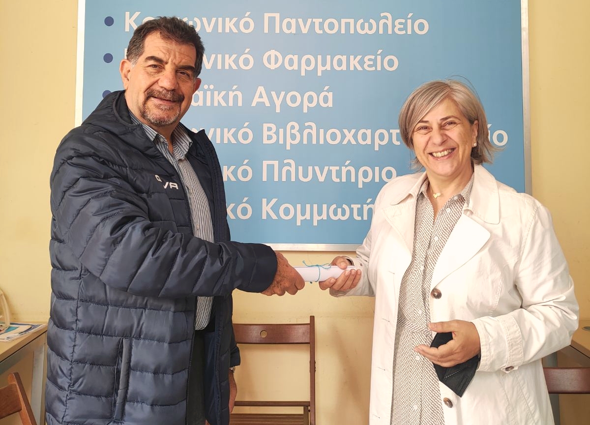 Τον ενημέρωσε για τις παροχές και το καθημερινό έργο των Κοινωνικών Καταστημάτων, παραδίδοντας του τη σχετική ευχαριστήρια επιστολή του φορέα μας για την πολύτιμη στήριξη που παρείχε η οργάνωση στο Κοινωνικό Παντοπωλείο, μέσω της πρόσφατης δωρεάς τροφίμων.